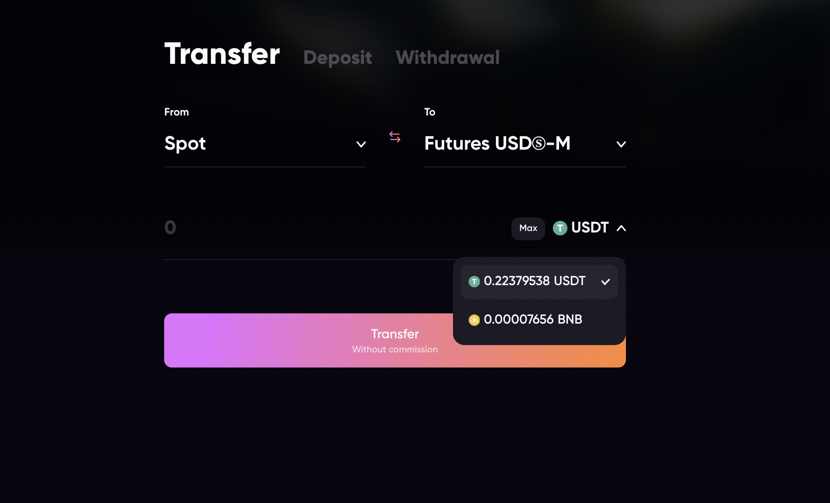 * Transfer any assets to the Futures USDⓈ-M wallet.