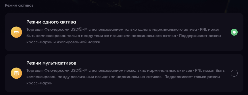 В данном разделе доступна настройка режима маржи при торговле фьючерсами USDⓈ-M. Более подробно ознакомиться с отличительными особенностями каждого режима можно [здесь](https://broker-docs.tiger.com/kakie-tipy-marzhi-dostupny-v-tiger.com-broker).&#x20;