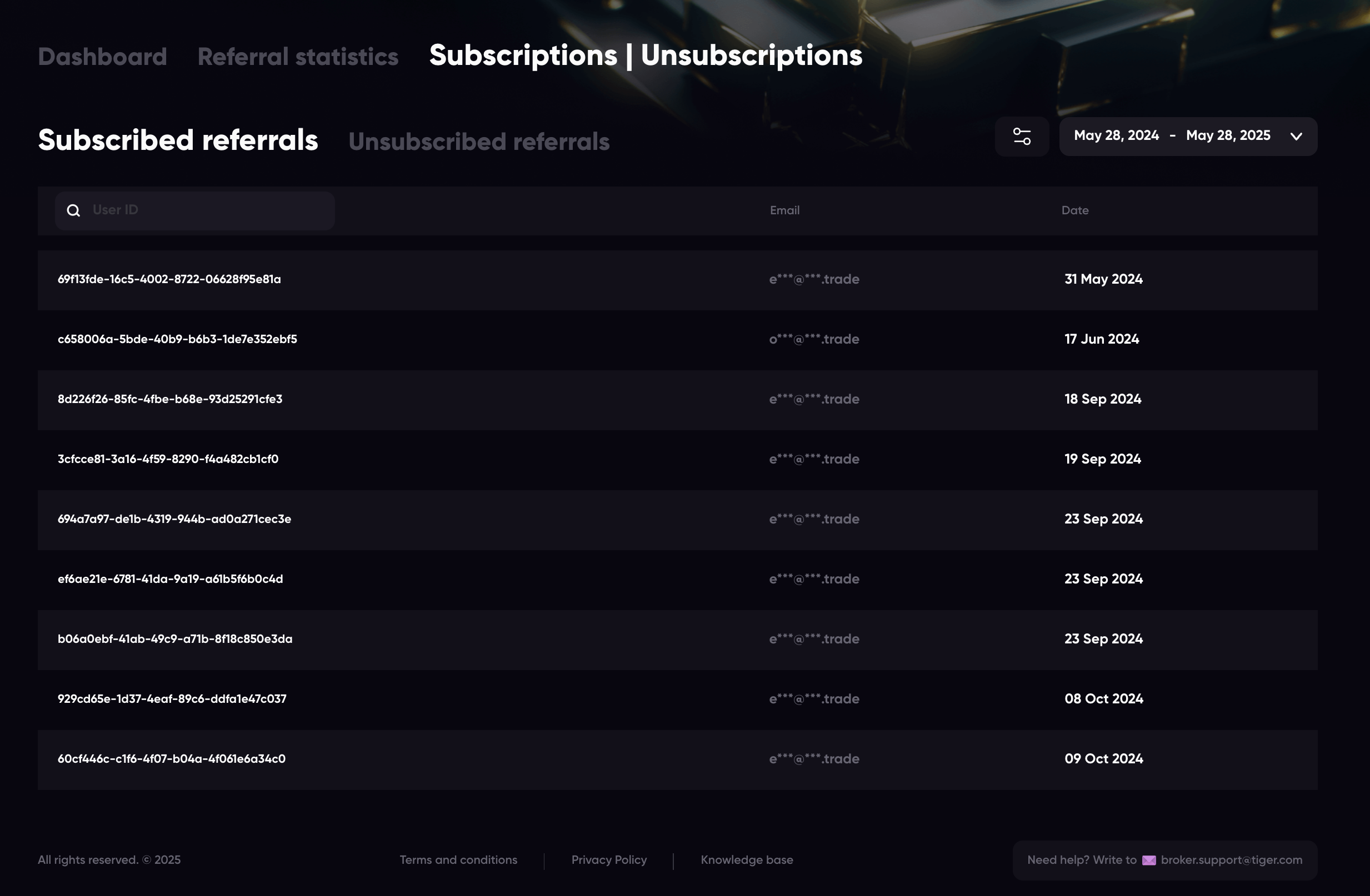 Вкладка «Дашборд» доступна на странице «Статистика рефералов» в личном кабинете на [Tiger.com Broker](https://account.tiger.com/auth)