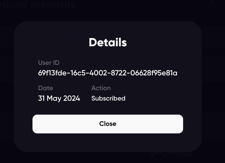 На вкладке «Статистика рефералов» можно отследить активность каждого реферала: